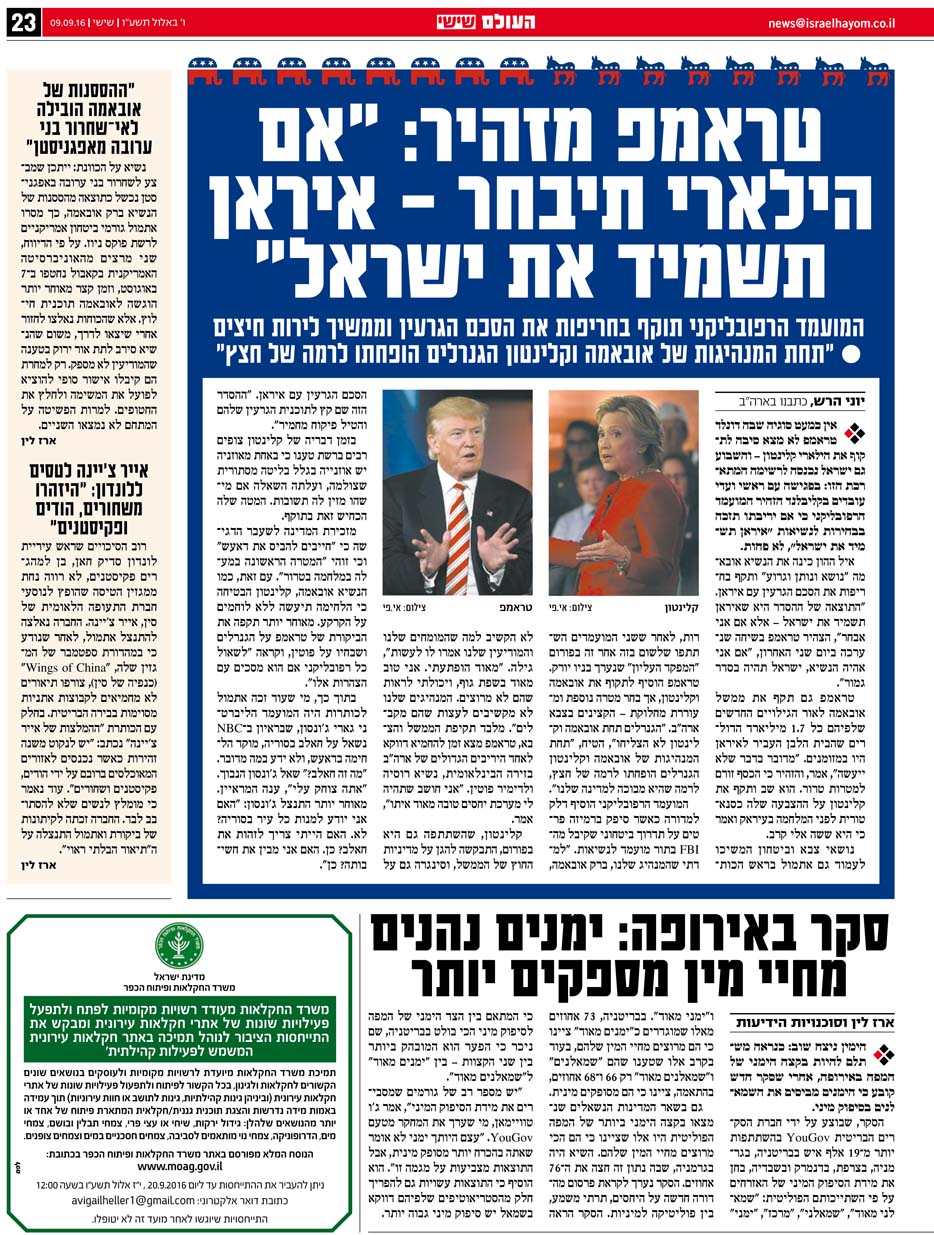"אם ה0מולנית הילרי אובמה תיבחר - איראן תשמיד את ישראל"